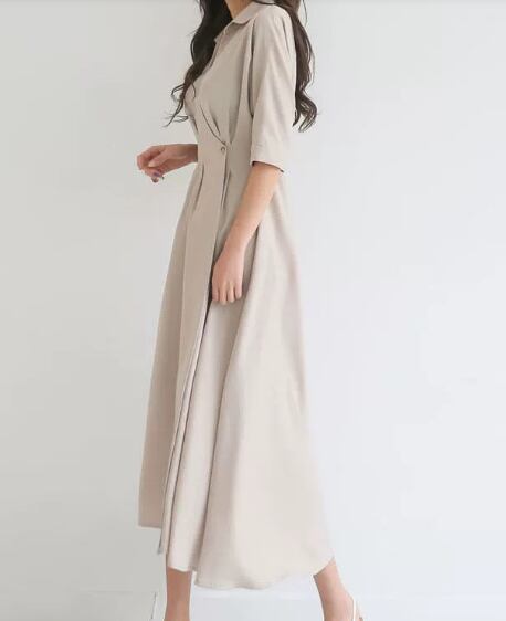 レディース ワンピース ミモレ 半袖 襟付き 角襟 フレア スリム 細身 Aライン ウエストマーク ハイウエスト 異国風 切り替えデザイン かわいい 大人可愛い きれいめ シンプル カジュアル 上品 おしゃれ エレガント キュート ナチュラル 清潔感 爽やか シック 高級感 涼しげ 知的 控えめ 優しい 無地 夏 20代 30代 40代 OL デート お出かけ 旅行 海 休日 ショッピング お祭り 花火大会 普段使い モテ 清楚 スタイルアップ効果 S M L ブラック アプリコット グリーン