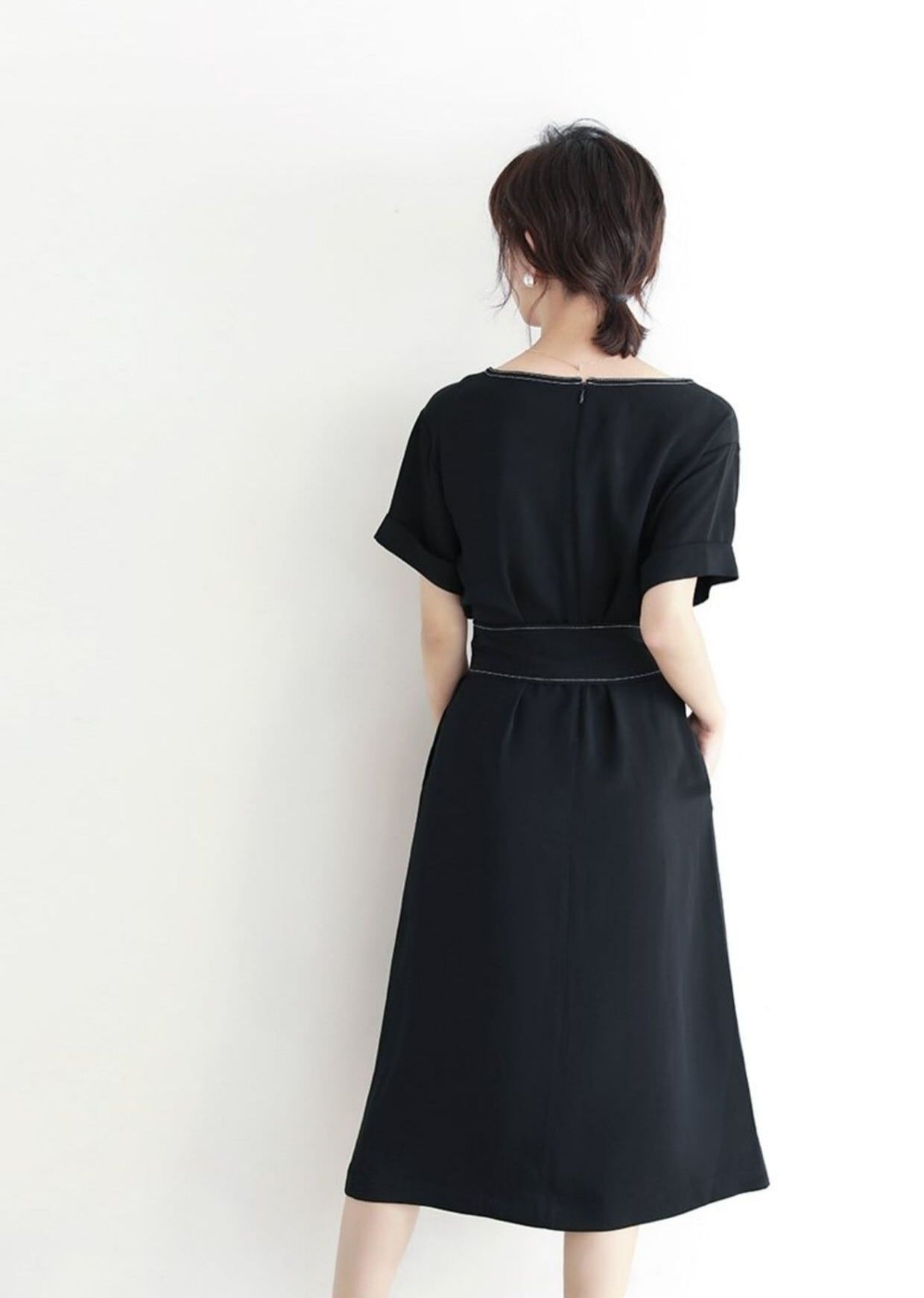 レディース ワンピース ミディアム丈 半袖 Vネック Aライン ウエストリボン ポケット 大人可愛い きれいめ シンプル おしゃれ お洒落 かっこいい レトロ 大人女子 ラフ ガーリー クール フォーマル 無地 春 夏 通勤 デート お出かけ 女子会 お泊まり 休日 イベント 旅行 ホテル レストラン ショッピング 普段使い お揃い 韓国 ファッション コーデ 楽ちん モテ 美脚 脚長 プレゼント ギフト インスタ映え S M L XL 大きいサイズ ブラック