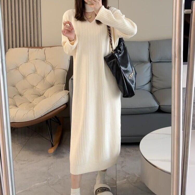 レディース ワンピース ロング丈 長袖 ラウンドネック ニット 大人可愛い きれいめ シンプル おしゃれ お洒落 かっこいい 大人女子 ラフ ガーリー クール フォーマル 無地 秋 冬 通勤 デート お出かけ 女子会 お泊まり 休日 パーティー イベント 旅行 ホテル レストラン ショッピング 普段使い お揃い 韓国 韓国系 ファッション コーデ 楽ちん 暖かい モテ プレゼント ギフト インスタ映え フリーサイズ ワンサイズ ホワイト ブラック レッド
