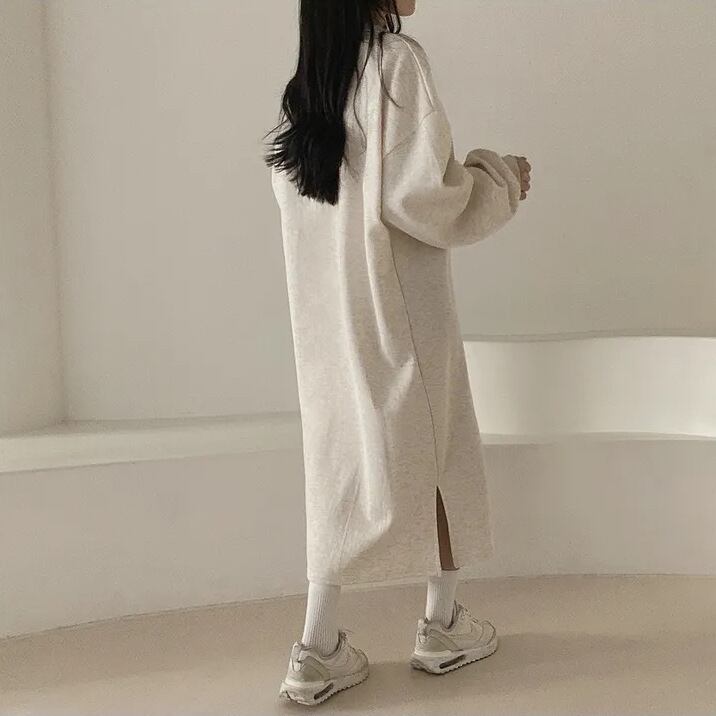 シンプルでありながら、大人可愛い魅力を引き立てるレディースロングワンピースのご案内です。この長袖デザインは、Vネックと襟付きが特徴で、カジュアルでありながらお洒落な印象を与えるアイテムです!無地のダークグレー、ブラック、ライトグレーは、秋冬シーズンにぴったりで、通勤やデート、お出かけ、女子会など多彩なシーンで活躍します。楽ちんでモテるコーディネートが楽しめる一着です。