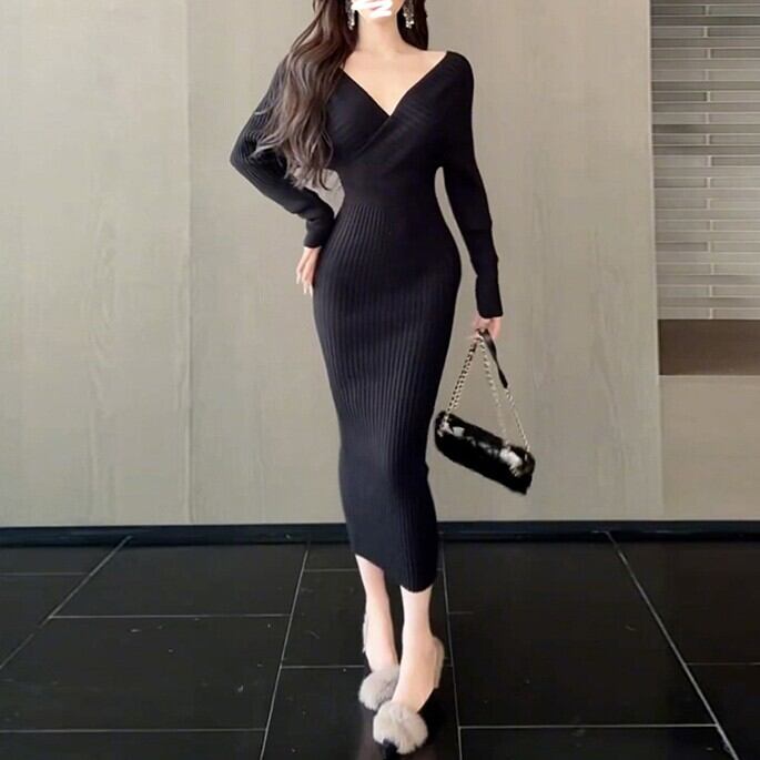 レディース ワンピース ロングワンピース ロング丈 長袖 Vネック Aライン ハイウエスト ニット 大人可愛い きれいめ シンプル カジュアル おしゃれ お洒落 かっこいい 大人女子 ラフ ガーリー クール 無地 秋 冬 通勤 デート お出かけ 女子会 お泊まり 休日 パーティー イベント 旅行 ホテル レストラン ショッピング 普段使い お揃い 韓国 韓国系 ファッション コーデ 楽ちん 暖かい モテ プレゼント ギフト インスタ映え S M L XL 大きいサイズ ブラック ピンク アプリコット