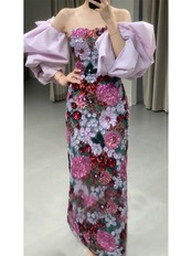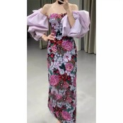 シンプルでありながら、華やかな印象を与えるレディースロング丈パーティードレスのご案内です。結婚式や二次会、披露宴、演奏会、発表会など、特別なシーンで大活躍します!ハイウエストのデザインがスタイルを美しく引き立て、花柄が優雅な雰囲気を演出。ノースリーブ仕様で、上品かつセクシーな印象を与え、皆の視線を集める一着です。